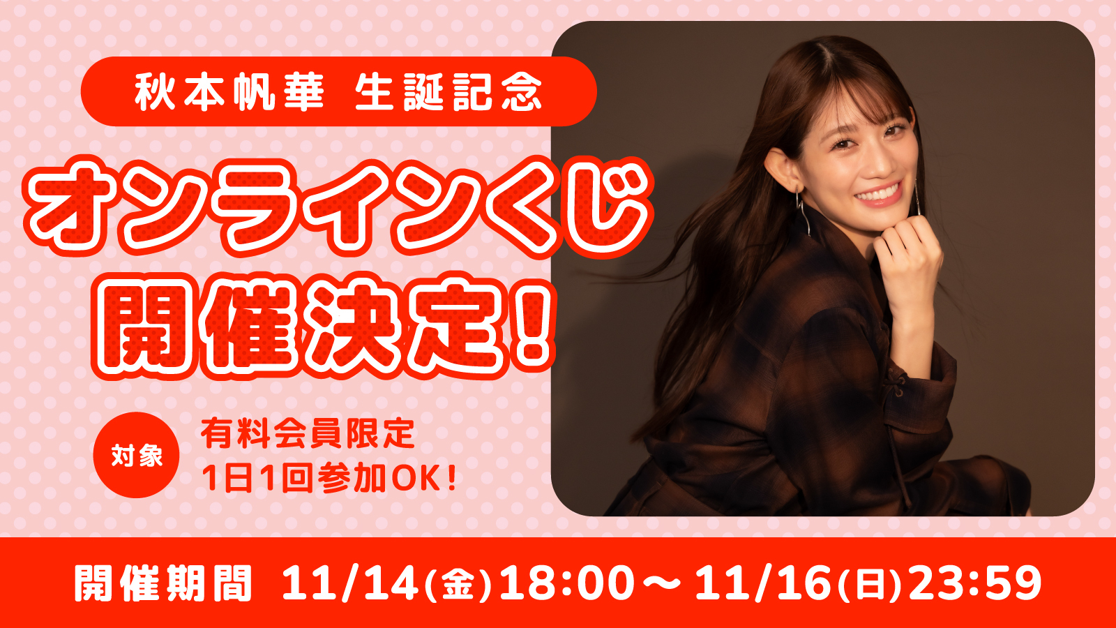 秋本帆華の誕生日を記念して、FC会員限定のオンラインくじの開催が決定しました!