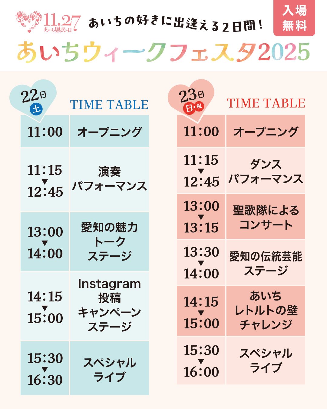 ※詳細・最新情報は「あいち県民の日・あいちウィーク特設サイト」をご覧ください。